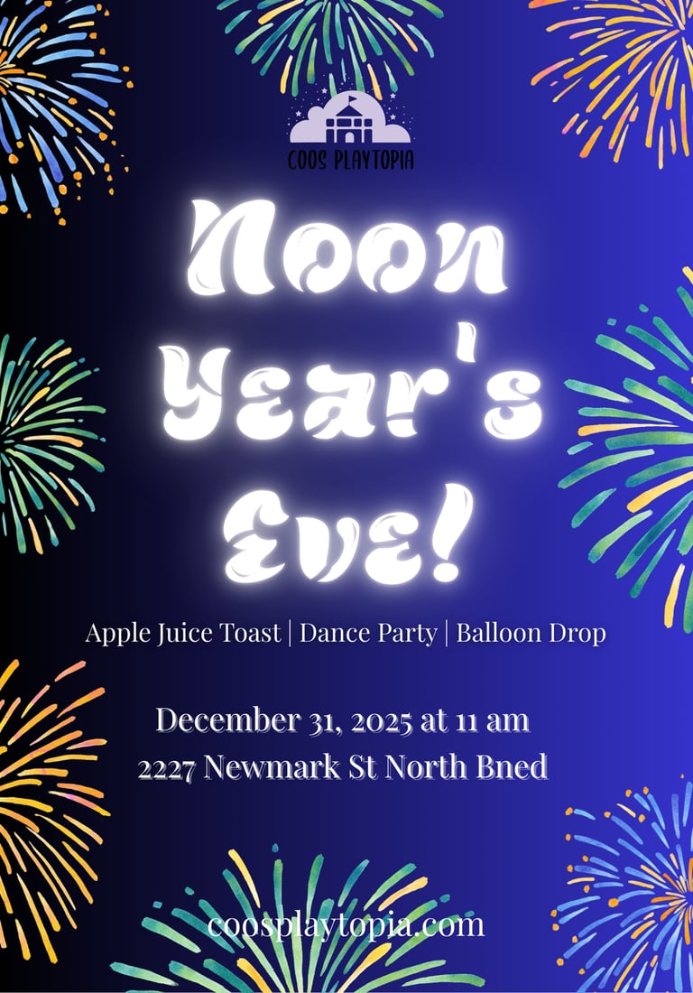 NOON YEAR'S EVE AT COOS PLAYTOPIA on December 31st! Limited Spots Available!